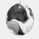 cute sad looking pitbull dog black white with ball ceramic ornament