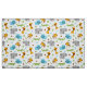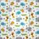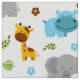 Cute jungle animal nursery fabric featuring little giraffes, elephants, alligator, hippopotamus , monkeys on branches. Perfect for nursery decor and other baby related projects.