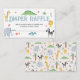 This cute and modern boys baby shower ‘diaper raffle’ enclosure card design features a cute safari design, with a zebra, elephant, crocodile, giraffe, and lion, with a matching safari pattern on the back. There is space for you to ask guests to bring diapers along for a raffle, use the message provided or create your own! Find the matching invitation in our collection.