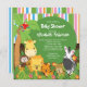 Start your jungle themed baby shower off right with our adorable baby animals safari baby shower invitation. Our cute invitation features a stripe print background with a palm tree, parrot, giraffe, monkey lion, tiger & zebra set on a jungle leaf with flowers background. The coordination back of this invitation features jungle leaves with the sweetest little monkey! Visit our shop to view this design in different variations and for matching thank you note cards, postage stamps and stickers. ©Pixal Paper Prints