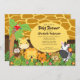Start your jungle themed baby shower off right with our adorable baby animals safari baby shower invitation. Our cute invitation features a giraffe print background with a palm tree, parrot, giraffe, monkey lion, tiger & zebra set on a jungle leaf with flowers background. The coordination back of this invitation features jungle leaves with the sweetest little monkey! Visit our shop to view this design in different variations and for matching thank you note cards, postage stamps and stickers. ©Pixal Paper Prints
