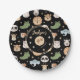 Cute Safari Jungle zoo animal faces birthday boy black paper plates with name and age included.