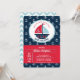 Amidst a navy blue background is "a sea of anchors" and a decal with a cute little sailboat. A wide, red band holds your party details. A nautical-theme invitations perfect for juvenile birthday parties or baby showers. (<a href='http://www.freepik.com/free-vector/birthday-card-with-nautical-elements_886557.htm'>Designed by Freepik</a>). <br/><br/>The card is easy to customise with your wording, font, font colour, paper shape options and choice of six paper types.<br/><br/>Not exactly what you're looking for? All our products can be custom designed to meet your needs at no extra charge.<br/><br/>Simply contact us at heartfelthelper@gmail.com.<br/><br/>Coordinating products available: Just ask us!