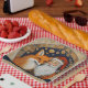 Customise this cute vintage Santa with a red fox plate for holiday gifts, cookies, and Christmas dinner.