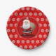 These festive red paper plates printed with big white round snowflakes and a happy Santa Claus sneaking in the middle with his sack full of gifts are one of the key ingredients of a perfect Christmas party .