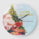 Cute Santa Claus Christmas Pine Tree Large Clock