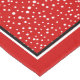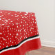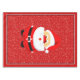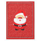 Cute Santa Claus Christmas whimsical tablecloth that features a cute whimsical Santa Claus and snowflakes on red background accented with a black and white border.