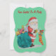 This original christmas invitation has a picture of Santa Claus with his sack filled with gifts all wrapped and ready for the Christmas day delivery, you can see a yellow teddy with a red bow and a blue bunny just poking out of the top of the green sack. Father christmas is holding a colourful red and gold striped christmas stocking that has a candy stick and smaller gifts in it, he is also holding a small wrapped gift in his hand The cute illustration is produced from an original water colour painting that I created a few years ago. The colourful and traditional festive image looks great on this cute candy jar and I'm sure it will bring a lot of smiles and cheer during the festive period. I think this original christmas invitation makes a great send to anyone you want to invite to your party during the Christmas holiday season. this is a customisable christmas invitation, you can personalise it with your own text.
