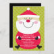 Start your winter holiday party off right with our cute santa claus invitation featuring a cute jolly santa claus set on a green dotted background. ©Pink Design