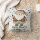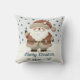 Cute Santa Clause Snowflakes Drawing Christmas Holiday Throw Pillow. A cosy, Boho-inspired Christmas home+decor featuring cute drawing of a Santa Claus on a snowy hill. Soft earthy tones such as terracotta, cream, and green. Delicate snowflakes are scattered across the pillow, adding a touch of winter magic. The text 'Merry Christmas' is in elegant script. The overall aesthetic exudes a warm, rustic, and modern Bohemian feel, perfect for a stylish yet festive holiday look. Add your name and year.