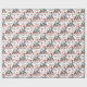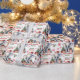 The repeated pattern on this Christmas wrapping paper is of a cute grey elephant who wears a red and white Santa hat. The elephant stands in the midst of pine trees and brightly wrapped Holiday gifts. Red and green text says MERRY CHRISTMAS", with your child's name and your signature below. Other images included in the pattern include red decorative snowflakes and candy canes.