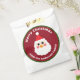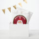 The central feature is a super cute, illustrated Santa face wearing his classic red hat, set against a rich burgundy red background.