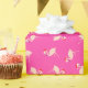 This festive design has a polka dot pattern of pale pink tropical flamingos, all wearing Santa hats, on a trendy, hot pink.