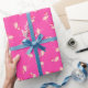 Cute Santa Flamingos Pattern Hot Pink Christmas Wrapping Paper