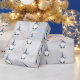Super cute blue graphic Santa Gnome pattern on a glittery silver and white background. Unique and versatile Wrapping Paper to present your Christmas gifts to any age group.