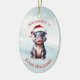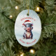 Cute Santa Hat Hippopotamus First Christmas Snowy Ceramic Ornament