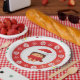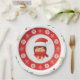 Add a playful touch to your holiday table with this adorable paper plate featuring a cheerful Santa character in a red hat and scarf, surrounded by snowflakes and peppermint candies. The festive red background and green rim make it perfect for Christmas parties, winter birthdays, or seasonal gatherings. Ideal for kids and family events, this plate brings joy and color to every bite.