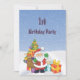 Cute Santa & Parcels Snow Scenery 1st Birthday Invitation