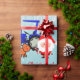 Santa and a reindeer stand by a farm tractor on this snowy Christmas wrapping paper. The message and name are easily personalised.