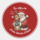 Cute Santa & Reindeer Hug Custom Red Christmas Classic Round Sticker