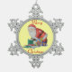 Cute santa smiling with green sack for christmas snowflake pewter christmas ornament