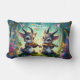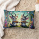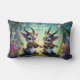 Wish someone special (or even yourself) a magical day with this lumbar throw pillow, which depicts an AI-generated fantasy-inspired woodland scene of a pair of saolas playing violas by candlelight in a magical forest sprinkled with trees, colourful butterflies, and colourful flowers. Reverse shows identical design.