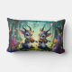 Wish someone special (or even yourself) a magical day with this lumbar pillow, which depicts an AI-generated fantasy-inspired woodland scene of a pair of saolas playing violas by candlelight in a magical forest sprinkled with trees, colourful butterflies, and colourful flowers. Reverse shows identical design.