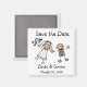 Funny Save the Date magnets with cute cartoon stick figures of a bride and groom! Customise with the names of the bride & groom, and the wedding date in the space provided.