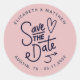 Elegant save the date rubber stamp with handwritten decorative script "save the date" and a cute heart in the middle. All information is encircled in elegant script font ready for easy personalisation.