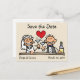 Funny Save the Date postcards with a cute cartoon bride and groom! Customise with your own info in the space provided.