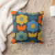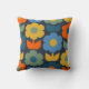 Cute Scandi Retro Modern Floral Pattern Blue Cushion