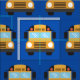 A cool yellow school bus pattern on a royal blue fabric for an elementary school bus driver.