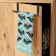 Sprinkle some holiday magic into your kitchen with a Scottie dog kitchen towel! This custom template is personalised with the recipient's name, or your family surname in retro script typography. A vintage-style design with simple illustrations inspired by 1930s Art Deco Christmas cards. It features cute Scottish Terriers wearing festive bows, joyfully running amidst snowflakes and stars. This playful pattern brings a nostalgic touch with a modern twist, making it a delightful and fun kitchen accessory. Printed colours: mint blue-green, red, green, black, white and gold.