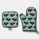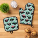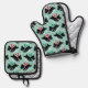 Cute Scottie Dog Snow Fun Pet Pattern Mint Green Oven Mitt & Pot Holder Set