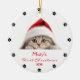 Cute Scottish Fold Cat Santa Hat Paw Personalised Ceramic Ornament