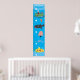 Adorable under the sea fun featuring our cute rowboat, octopus, seahorse shark and submarine cartoon illustration for the nursery.