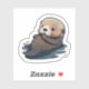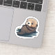 The sticker features a cute sea otter floating on its back, holding a small fish in its paws.