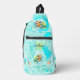 Personalise this cute happy turtle-themed sling pack in turquoise and green, to make it a one-of-a-kind gift for a boy :) Great for summer vacation, swimming lessons and more. Easily edit the text or leave it blank. - Kate Eden Art