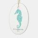Cute Seahorse Aqua Glitter Coastal Christmas Photo Ceramic Ornament