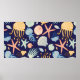 Cute seamless pattern with jellyfish, shells, fish, starfish and algae.