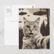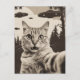A funny cat taking a selfie with UFOs in sepia tone scifi fantasy art