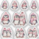 Cute penguins wearing pink clothes. Some are single, others are a couple.
