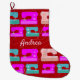 Cute Sewing Machine Pattern Crafting Themed Large Christmas Stocking. Great idea for the sewer, crafter, dressmaker, or tailor in your life. Customise the stocking by changing the name to suit.