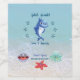 Chic beach or pool design featuring cute marine animals (shark, Seahorse, octopus, starfish, shell) on a beach background. Use Personalise tool to add your info. For matching items, please, visit my Colourful Birthday Collection.
