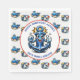 Blue and red nautical oceanic themed whales, sharks and anchors birthday party napkins.