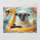 Cute Sheep on Yellow Swan Floatie Postcard