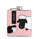 Cute Sheeps Illustration Black And White on Blush Hip Flask