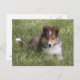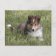 Cute Shetland Sheepdog puppy lying in grass Postcard