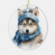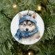 Cute Siberian Husky Dog Christmas Ceramic Ornament
