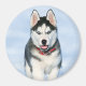 Cute Husky Puppy Dog with Blue Eyes in the snow Magnet